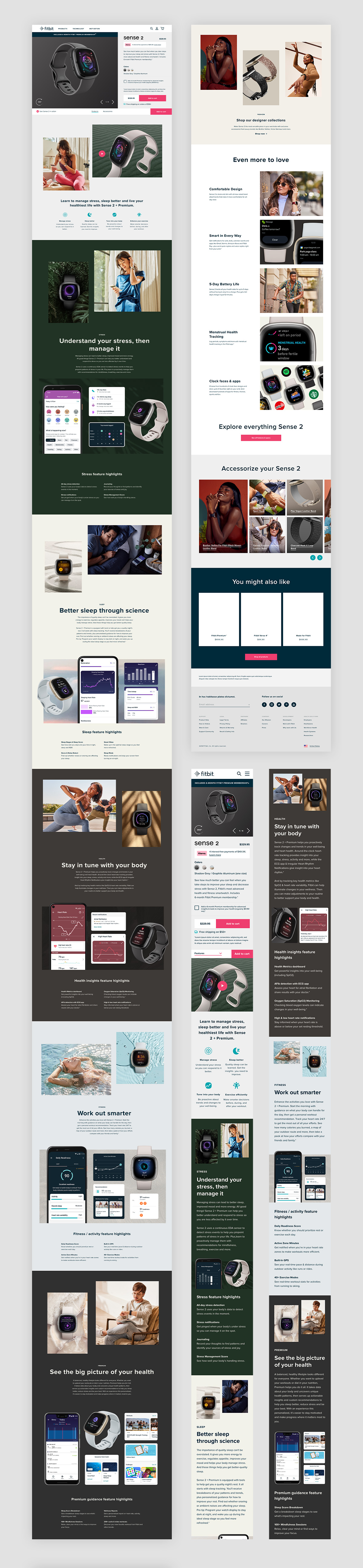 Fitbit wanted to create a unique visual experience for their latest smartwatch launch. I created a bento box design system to elegantly display their various product screens, and weaved in photo composited nature shots to create a masonic experience.